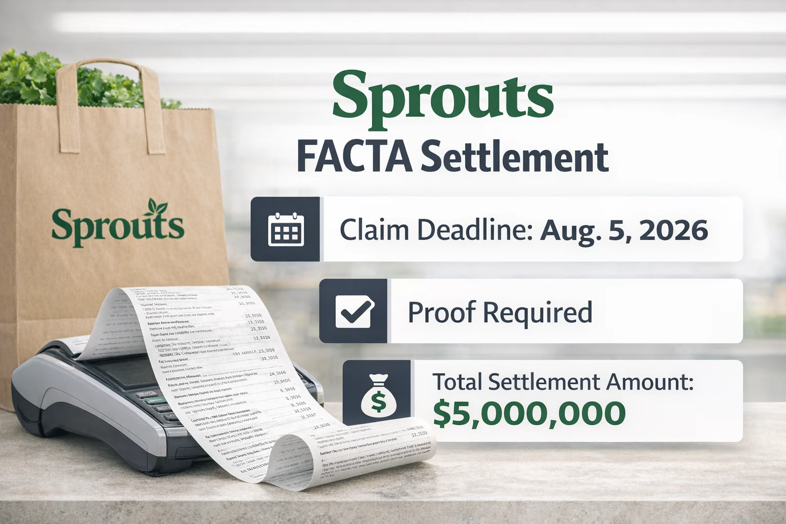 The Sprouts FACTA Settlement resolves claims that Sprouts Farmers Market, Inc. and SFM, LLC violated the Fair and Accurate Credit Transactions Act, also called FACTA, by printing more than the last five digits of customers’ credit, debit, or EBT card numbers on electronically printed receipts. Sprouts denies the allegations and does not admit wrongdoing, but agreed to a proposed settlement to avoid the cost and uncertainty of further litigation.